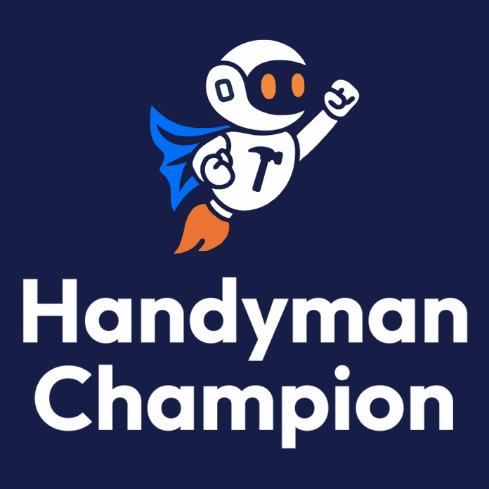 Handyman Champion Product Launch Logo. Handyman Champion Favicon Over Text.