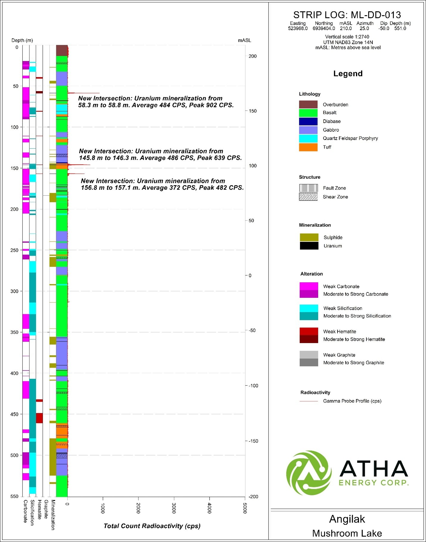 Troy Boisjoli, CEO commented: “The successful results from Mushroom Lake and KU Discovery continue to demonstrate the Angilak difference. The 2025 Angilak Exploration Program was an unprecedented success with five new discoveries along the RIB-Nine Iron Trend and the effective application of EM Inversion providing a road map to discovery. The Company has transformed the Angilak Uranium Project and set the stage for what will be a catalyst filled 2026. At a time when the world is looking to stable jurisdictions to supply the Nuclear Renaissance with the raw materials it needs to make it happen, ATHA Energy is primed to help answer those demands.”