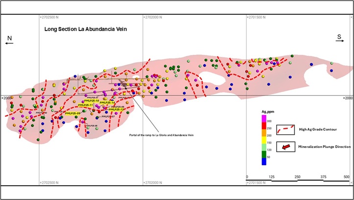 Hole PMLP 25-12: 585 g/t Ag and 0.65 g/t Au over 4.90 metres true width