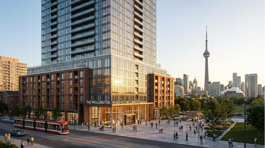 A modern mixed-income residential tower integrated into Toronto’s urban fabric.